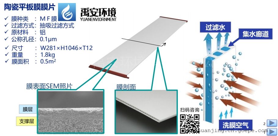 二、板式陶瓷膜CH250-1000TM100-HU2DJYZMMCEUF100井下排水处理回用系统MBR膜组件参数禹安环境介绍膜片型号