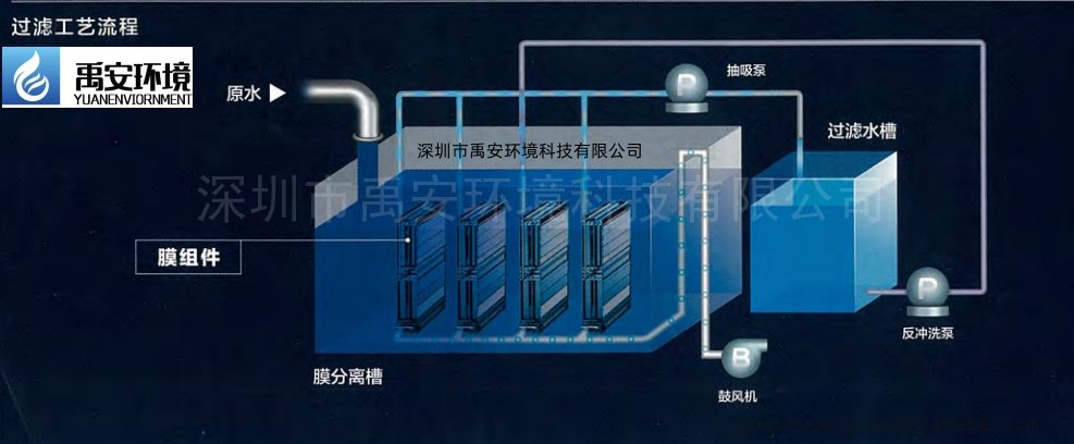 以Al2O3为结构的微滤陶瓷平板膜,包括膜组件、曝气系统、污泥回流系统、ClO2消毒系统、PLC控制终端等,处理量5~1000吨/天,以生活污水为原水的出水水质可达到城市杂用水水质标准(GB/T18920-2002)中的城市绿化水质要求。